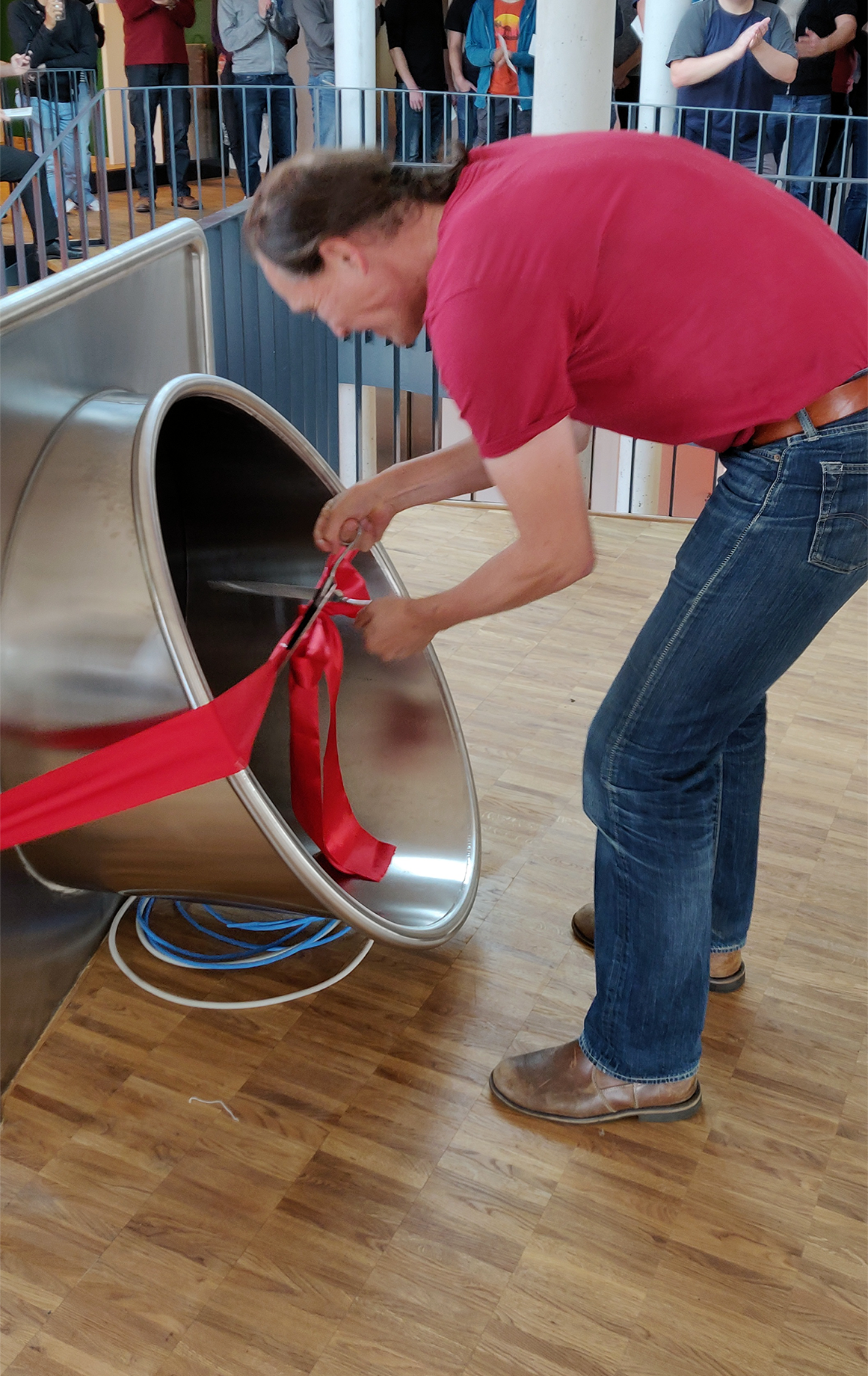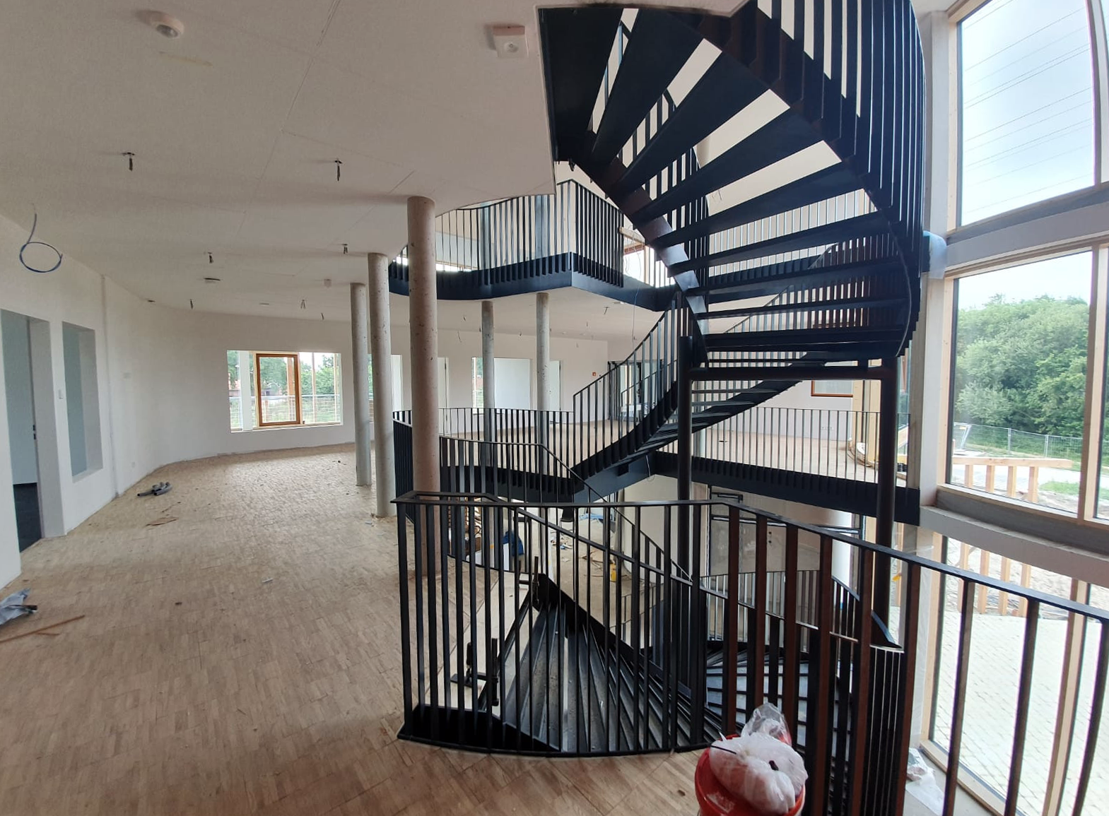 Now that our new building is completely closed, things are getting exciting inside. The large spiral staircase has recently been installed in the foyer.