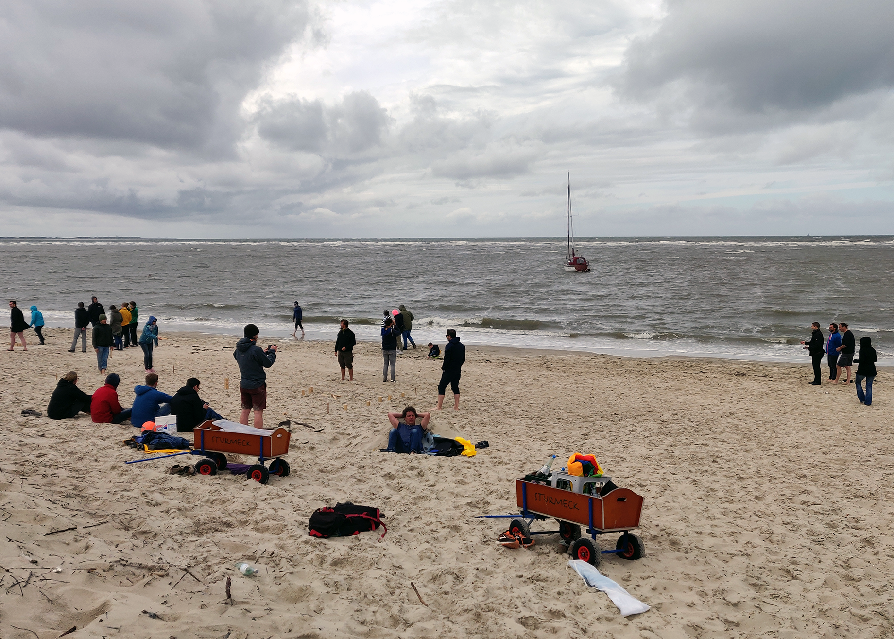 Five hours later, we conglomerated right on time at the harbour in order to set-off back home. The winners were crowned on the mainland. The third-place team "Sleet" received air-socks; the team "Southwest Wind" came in second place and received mouse pads with offshore wind farms and the main prize, T-shirts with the "emsystemized" Spierkeroog coat of arms, went to the team "Storm Warning".