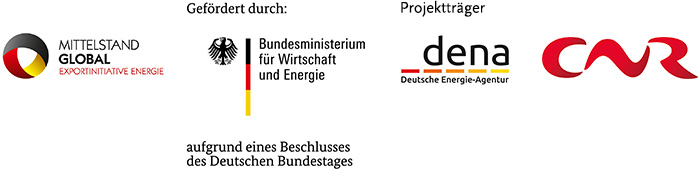 This project was initiated by the German Energy Agency (DENA) and realized by the Foreign Ministry of Economic Affairs and Energy (BMWi) as part of the DENA-Renewable-Energy-Solutions promoted program "Energy Export Initiative".