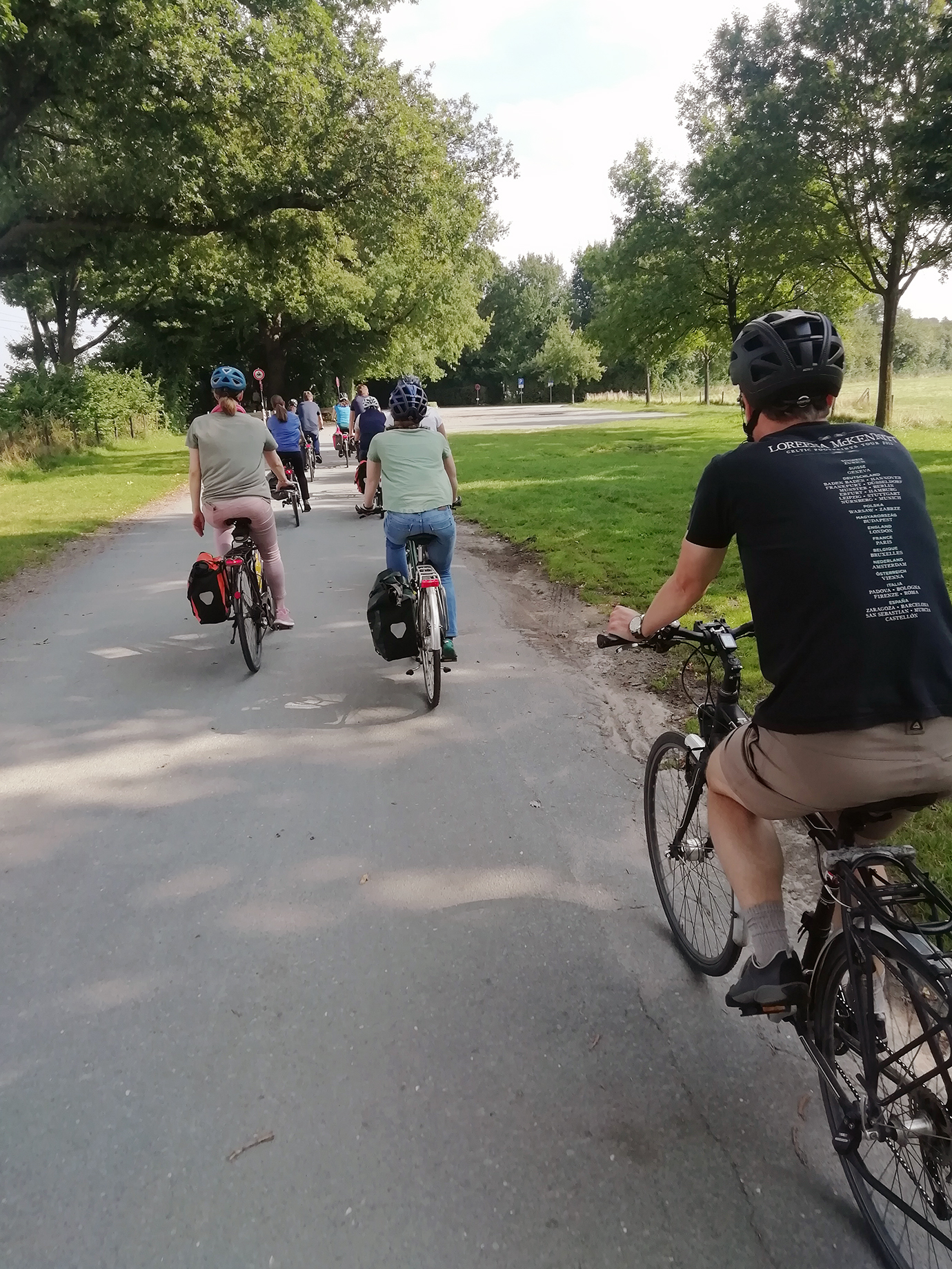 "Escape by Bike" ist eine Schnitzeljagd, bei der die Spieler verschiedene Rätselstationen im schönen Ammerland anradeln. Da die Stärke der Kollegen im Bewerten von Vorhersagen liegt, wurde schon bei der Planung beschlossen, nicht die ganze 45-km-Strecke abzuradeln, sondern mehr Zeit zum Eisessen freizuhalten. Die drei entferntesten Stationen wurden deshalb vorab an Rennradlerinnen delegiert, die Fotos zum Lösen der Aufgaben beisteuerten. Nach somit "nur" 30 Kilometer Radstrecke nahm das Team eine Schatztruhe in Empfang und hat damit "Das Geheimnis des Hofgärtners" offiziell gelöst. Da haben die Kollegen sich ihr Eis doch redlich verdient.