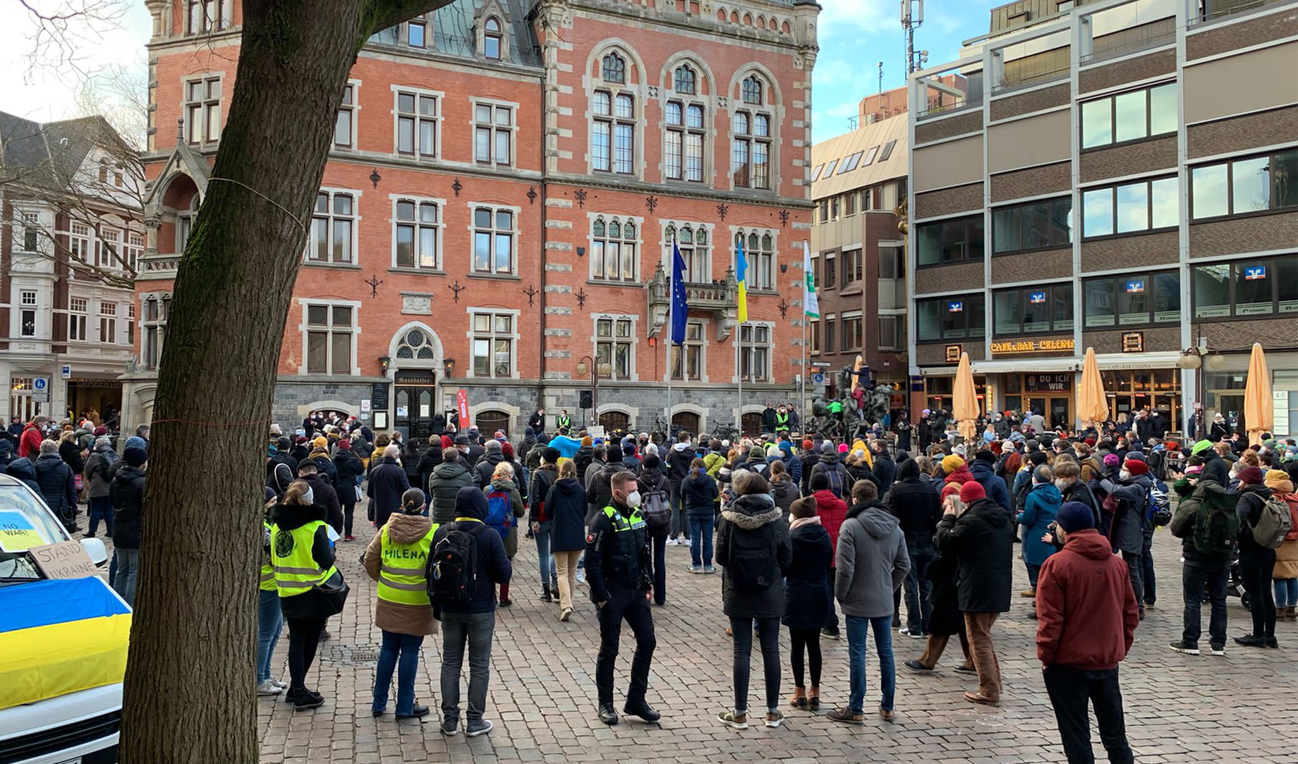 Am Sonntag haben einige Kollegen die Mahnwache auf dem Oldenburger Rathausplatz tatkräftig unterstützt. Als Geldspende unserer Mitarbeiter sind bereits 7000 € zusammen gekommen, die Hilfsorganisationen zur Verfügung gestellt werden.