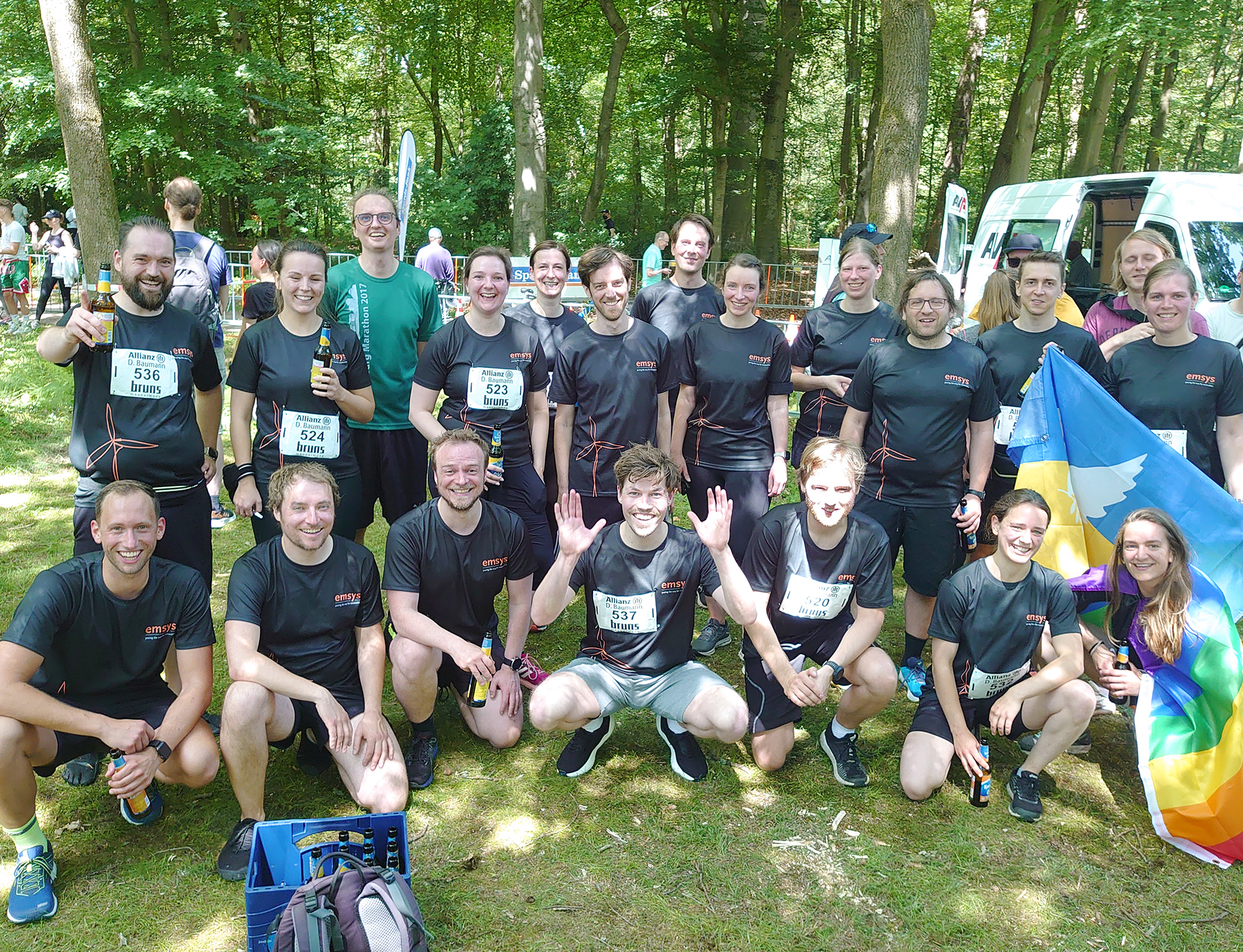 Als guter Nachbar hat emsys die Veranstaltung mit einem kleinen Sponsoringpaket unterstützt und für den 6,3km-Firmenlauf ein Team auf die Beine gestellt. Nach drei Monaten fast wöchentlichem Training stellten die emsysler mit 23 Läufern das größte IT-Team der Sonderwertung. Doch nicht nur die Gruppengröße beeindruckt: Zwei unserer Kollegen rannten in die Top 50 und zwei weitere in die Top 75 der 684 Teilnehmer. In der Mannschaftswertung erreichte emsys damit den 6. Platz von 58 Gruppen. Und was natürlich die Hauptsache ist: Alle hatten laufend Spaß.