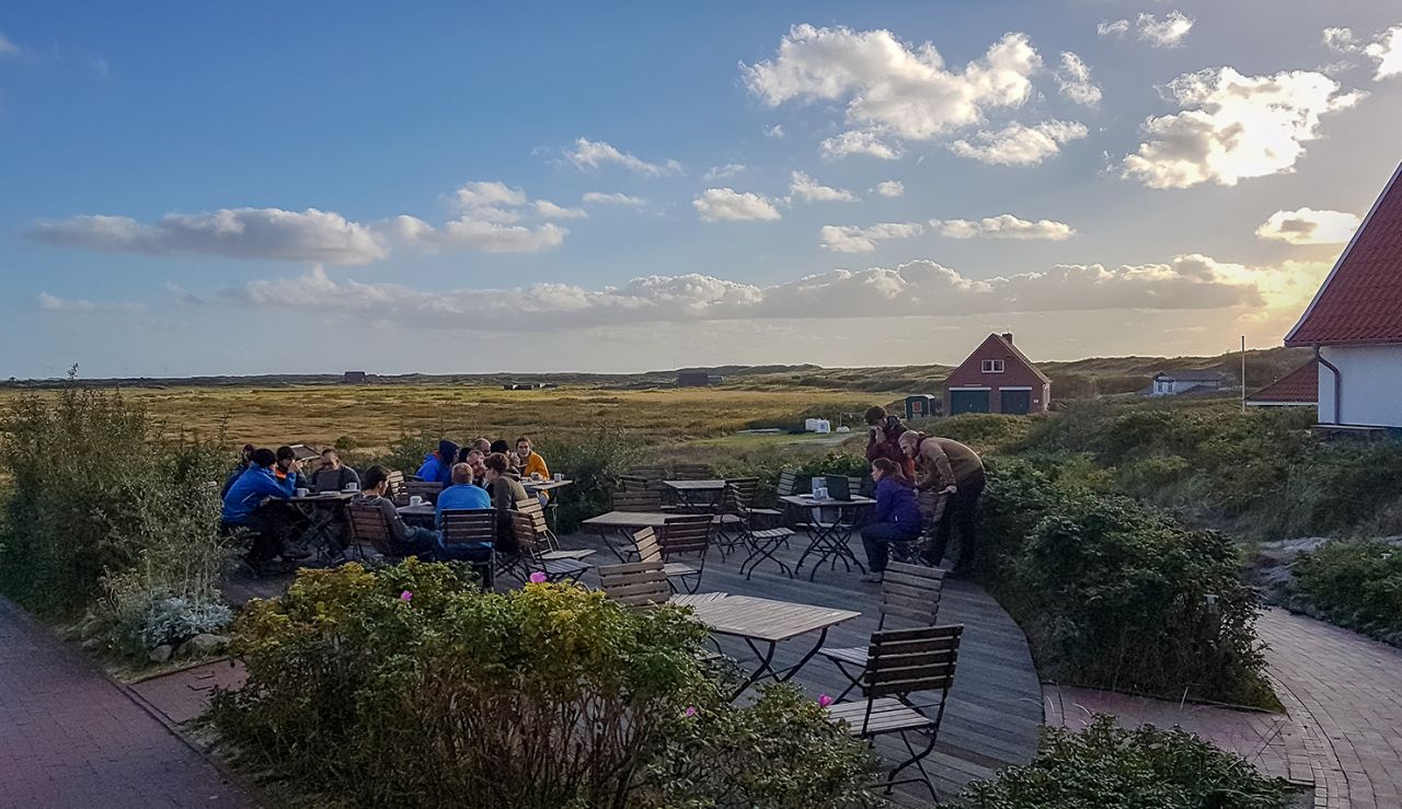 Nach Bus- und Fährfahrt wanderten wir zu unserer Stammunterkunft am Westende Spiekeroogs und genossen dort erst einmal das Mittagessen. Anschließend gab es dreimal drei Blöcke Vorträge, mit denen die Kollegen Einblicke in die Bereiche der anderen Gruppen bekamen, sowie die von den Chefs unterhaltsam in PowerPoint verpackte Entstehungsgeschichte von emsys. Nach Kaffee und Kuchen hatte die Entwicklungsabteilung eine besondere Überraschung für die Belegschaft und endlich klärte sich auf, warum möglichst viele Laptops auf die Insel mitgebracht werden sollten: Wir alle sollten einfach einmal ein rudimentäres Abregelungssystem schreiben. Auf mehreren Schwierigkeitsleveln von einer Anlage bis zum großen, unzuverlässig reagierenden Park brüteten Gruppen aus vier mehr und minder Python-erfahrenen, aber allesamt hoch motivierten Kollegen bis zum Abend am perfekten Steuerungs-Algorithmus.