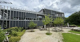 - Ein toller Arbeitsplatz in einem modernen Gebäude mit großzügigem Garten und eigenem Beachvolleyballfeld.
